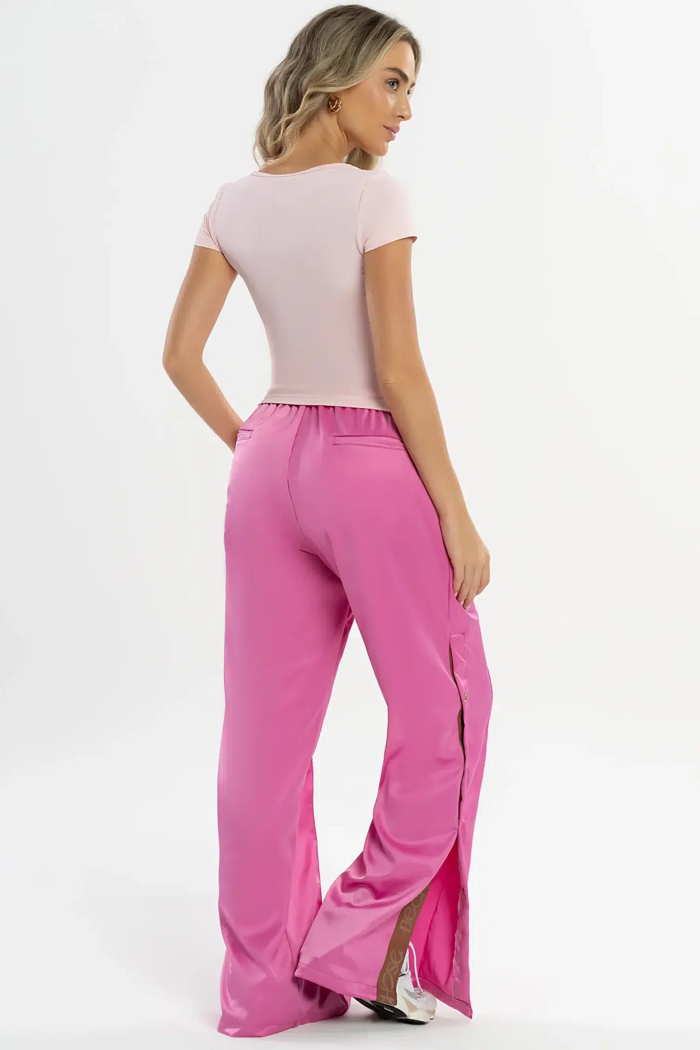 Seu design minimalista e o tom rosa ballet conferem um ar romântico e sofisticado, ideal para compor looks casuais ou mais elaborados. A modelagem ajustada valoriza a silhueta, enquanto as costuras discretas garantem um acabamento impecável.