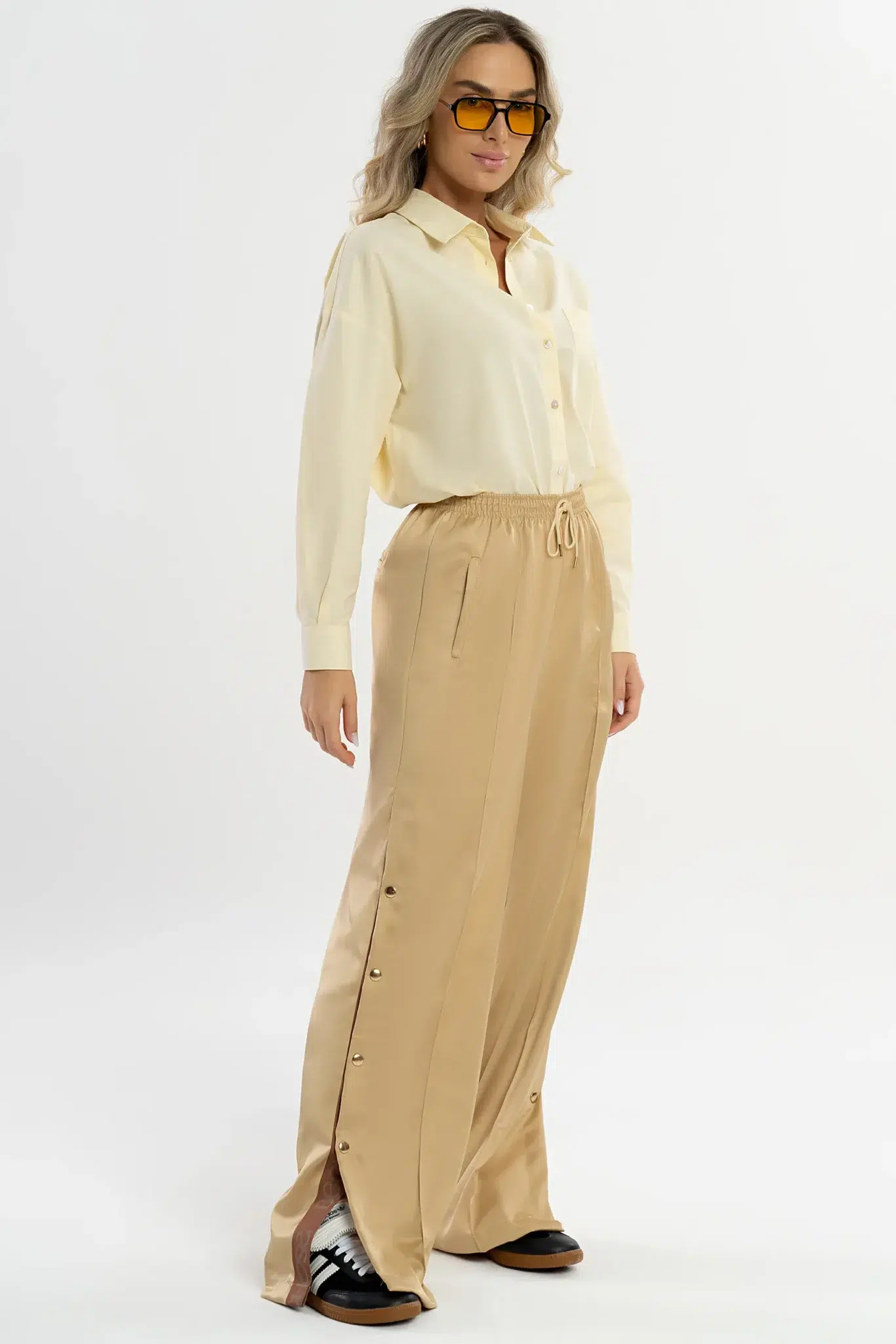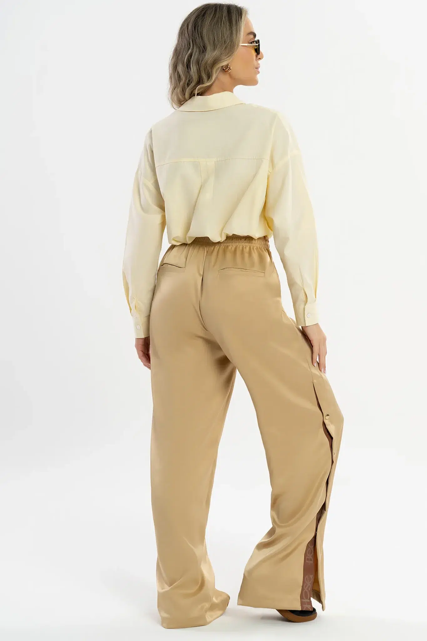 A Calça Dália Nude Acetinado combina sofisticação, leveza e um toque contemporâneo. Inspirada na beleza refinada da flor dália, é confeccionada em tecido acetinado de alta qualidade, com brilho sutil e caimento impecável.
