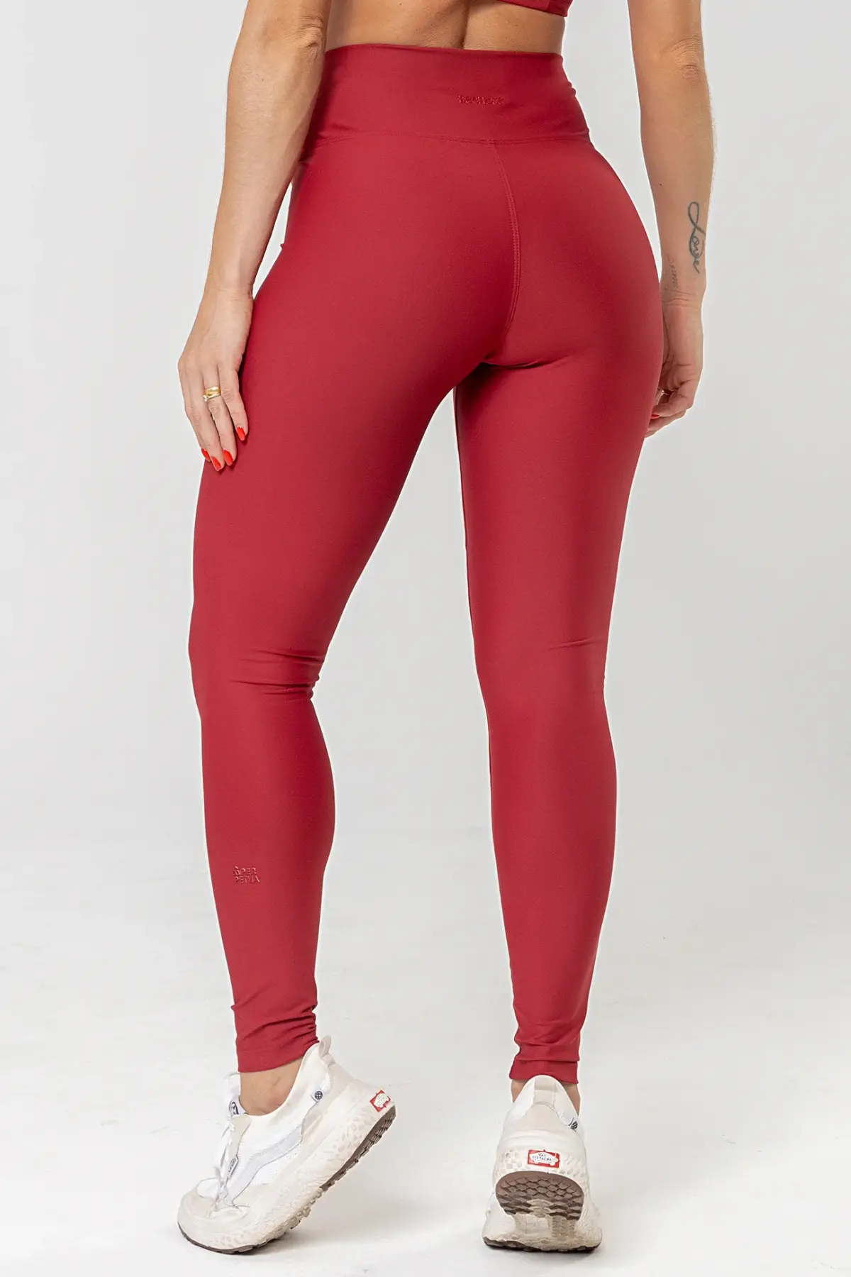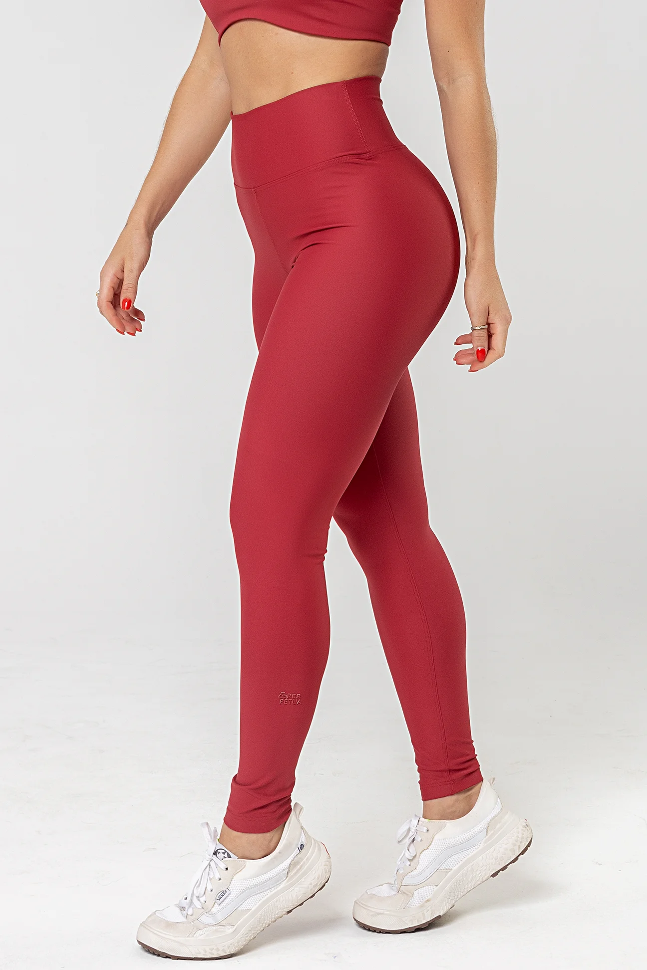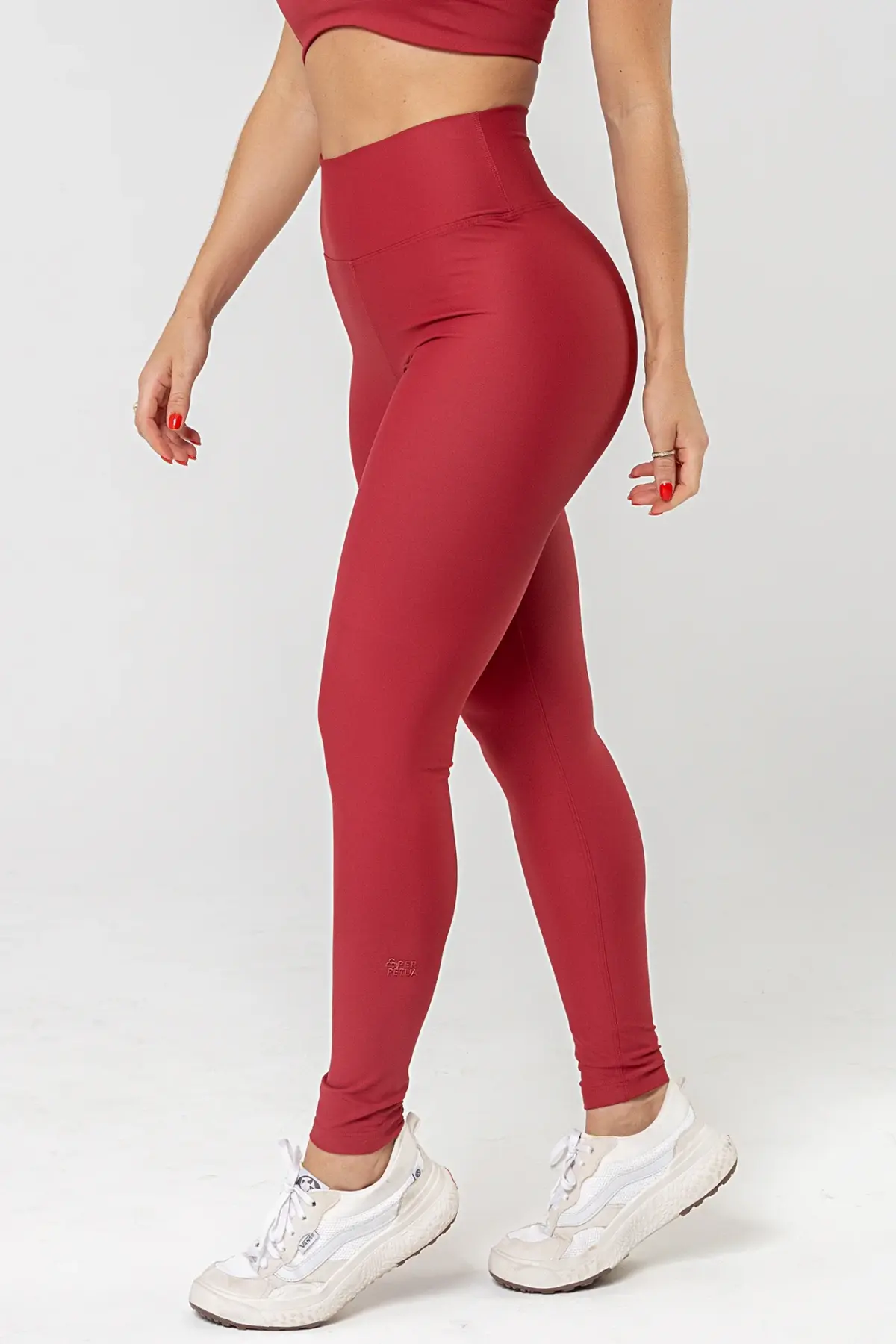 Os detalhes como a estampa interna em DTF, o aplique especial Perpétua e a alça de silicone para tag evidenciam o cuidado nos acabamentos e elevam o padrão da peça. Na cor Red Dark, a Legging Perpétua 4” entrega um visual elegante, marcante e atemporal.