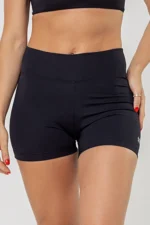 O fundilho triangular com cobertura melhora o encaixe e aumenta o conforto durante o uso. As costuras internas e externas em cobertura com 2 agulhas reforçam a estrutura do shorts, enquanto a bainha de 2 cm com costura 2 agulhas garante acabamento limpo, resistente e alinhado ao padrão técnico da peça.