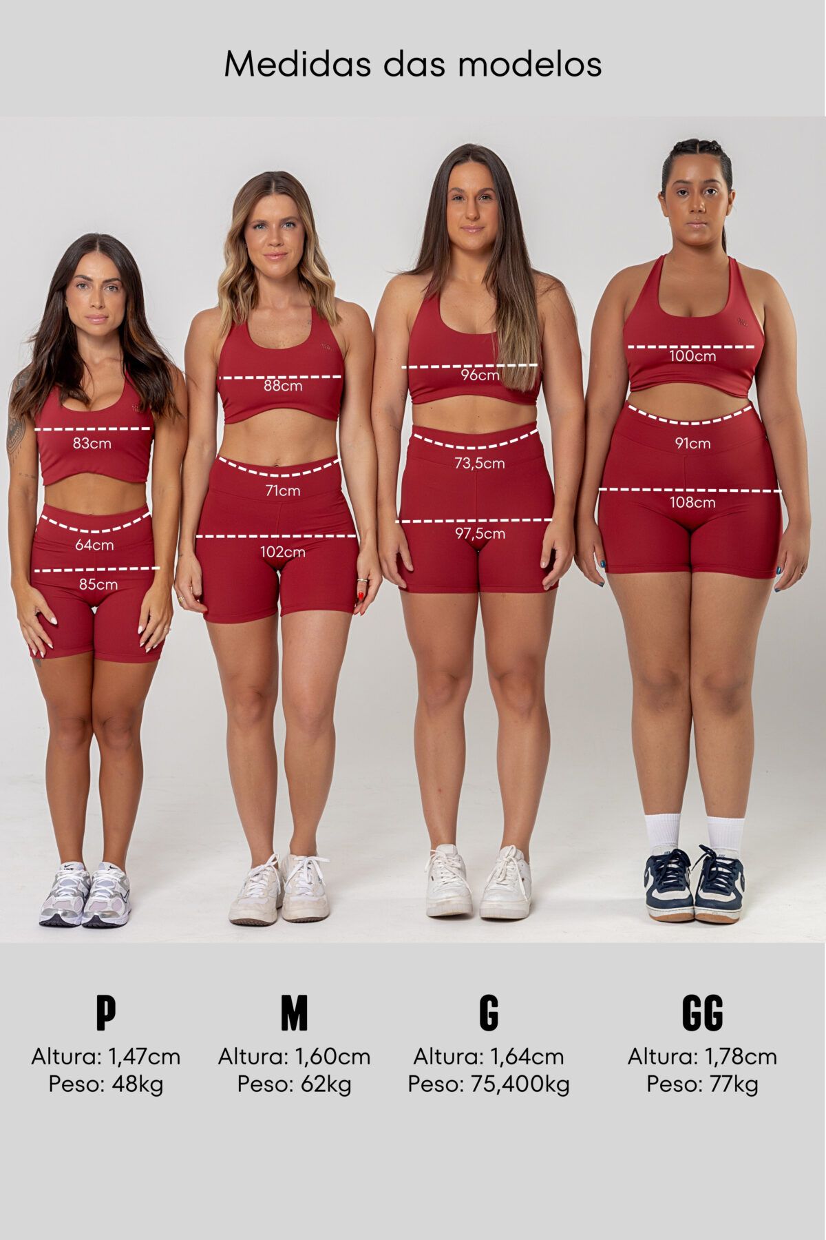 O fundilho triangular com cobertura melhora o encaixe e o conforto durante o uso. As costuras internas e externas em cobertura 2 agulhas reforçam a estrutura do shorts, enquanto a bainha de 2 cm com costura 2 agulhas garante acabamento limpo e resistente.
