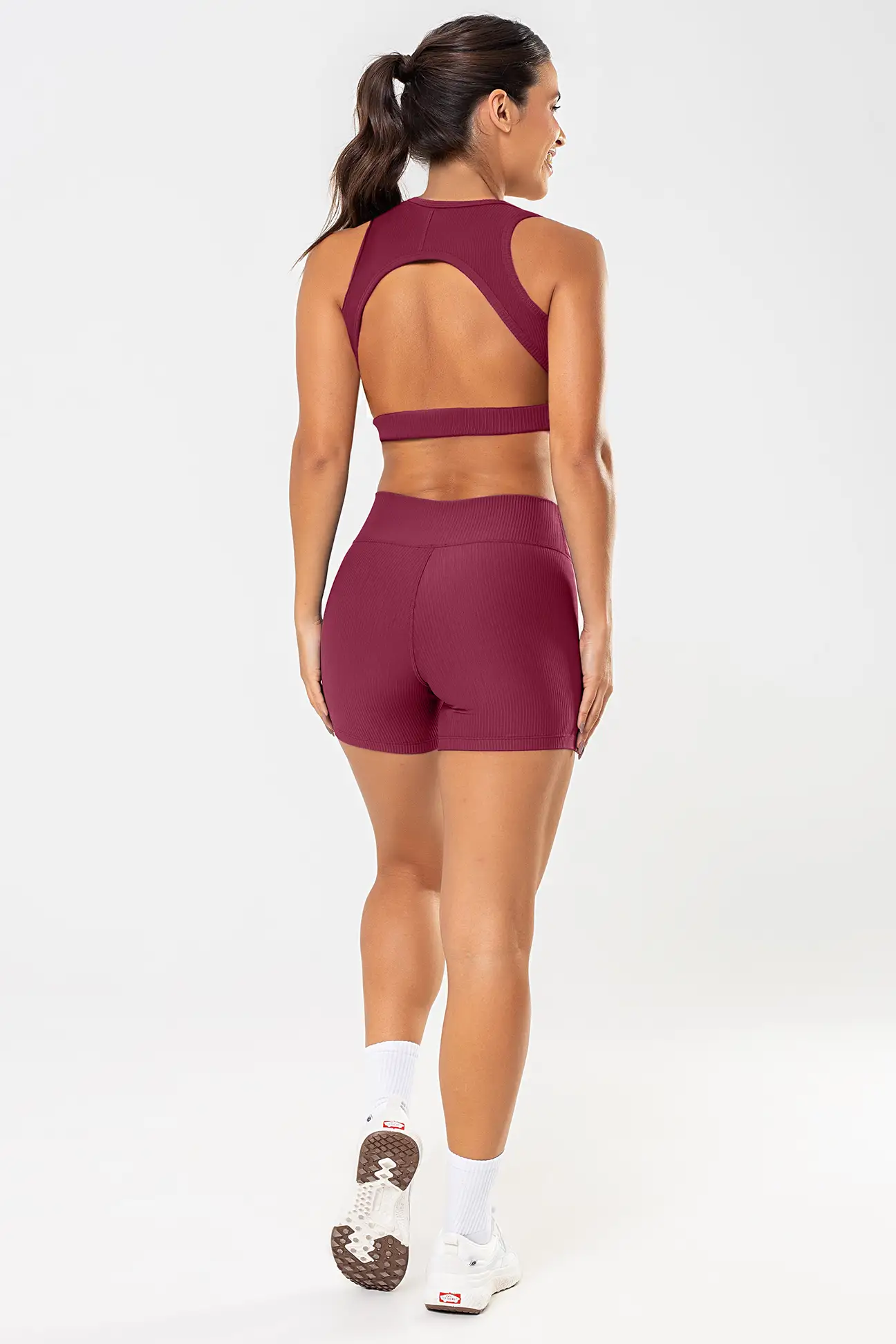 Agora disponível na cor Cranberry, um tom de vermelho escuro sofisticado e elegante, que valoriza diferentes tons de pele e traz um toque discreto de cor à composição. Sem exageros, essa tonalidade adiciona profundidade ao visual, tornando o shorts uma peça versátil e fácil de combinar.