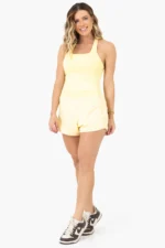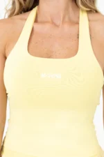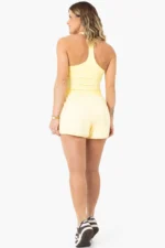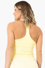 Na cor amarelo manteiga, o Top Alongado Lolo é versátil, feminino e ideal para composições esportivas ou athleisure.