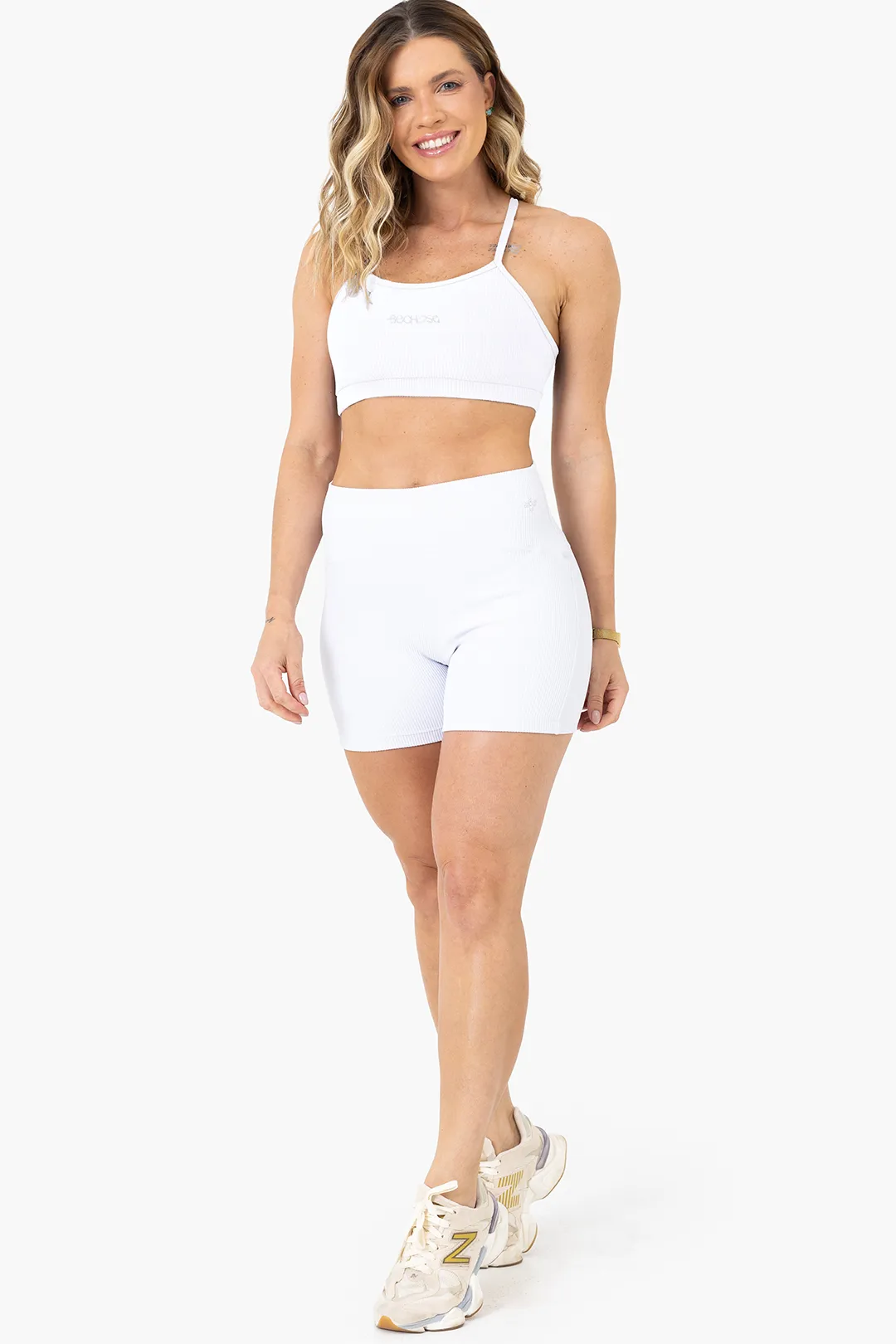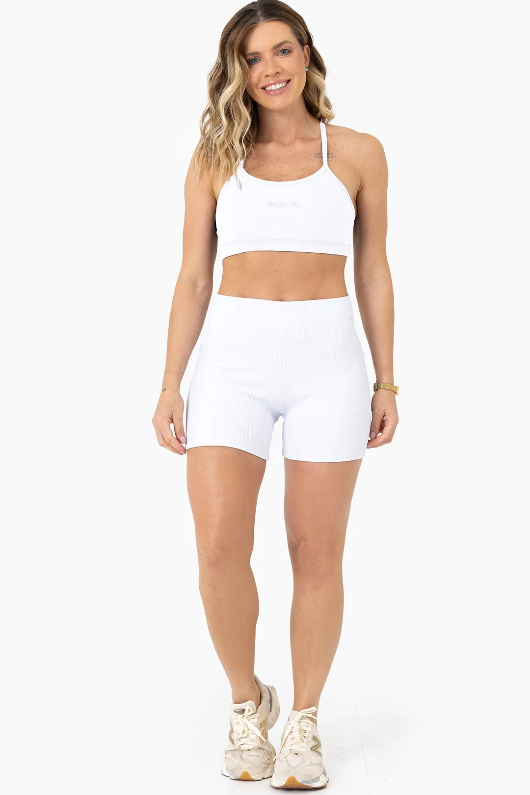 Na cor branco Canelado, a peça se destaca pela versatilidade e sofisticação, sendo perfeita para composições esportivas ou produções athleisure.